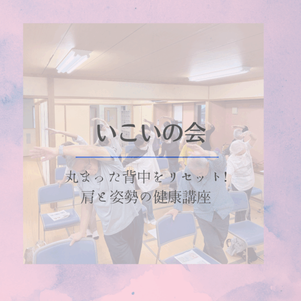 今回で3回目となりますが、またまた磐田市の『いこいの会』にお招きいただき、「肩と姿勢のお話」をさせていただきました。