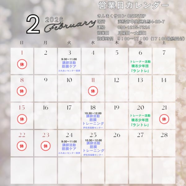 また浜松マラソンも近いですので、ランナーの方には大会前のコンディショニングケアもしていますので、気兼ねなくご相談ください。